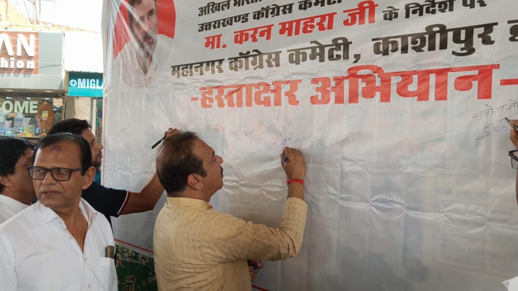 राहुल गांधी के नेतृत्व में कांग्रेसी कार्यकर्ताओं ने काशीपुर की सड़कों पर उतरकर वोट चोरी के खिलाफ हस्ताक्षर अभियान चलाया जनता के अधिकारों की रक्षा का संकल्प जताया