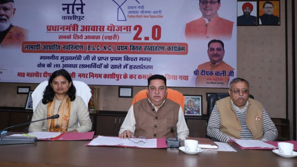 काशीपुर। नगर निगम सभागार में आयोजित कार्यक्रम के दौरान प्रधानमंत्री आवास योजना 2.0 के अंतर्गत शहर के 193 लाभार्थियों के लिए राहत और खुशी का माहौल देखने को मिला। इस अवसर पर माननीय मुख्यमंत्री से प्राप्त प्रथम किश्त की धनराशि सीधे लाभार्थियों के बैंक खातों में हस्तांतरित की गई, जिससे वर्षों से पक्के आवास के सपने देख रहे जरूरतमंद परिवारों के चेहरों पर संतोष और उम्मीद साफ झलक रही थी। कार्यक्रम के दौरान औपचारिक रूप से पांच लाभार्थियों को सांकेतिक रूप में चेक भी भेंट किए गए, जिससे योजना की पारदर्शिता और सरकारी प्रतिबद्धता को रेखांकित किया गया। सभागार में उपस्थित जनप्रतिनिधियों, अधिकारियों और लाभार्थियों के बीच यह भावना स्पष्ट थी कि यह योजना केवल आर्थिक सहायता नहीं, बल्कि सामाजिक सम्मान और सुरक्षित जीवन की दिशा में बड़ा कदम है। कार्यक्रम की शुरुआत से लेकर समापन तक माहौल सकारात्मक और उत्साहपूर्ण बना रहा, जिसमें सरकार की जनकल्याणकारी सोच का प्रभाव स्पष्ट नजर आया।