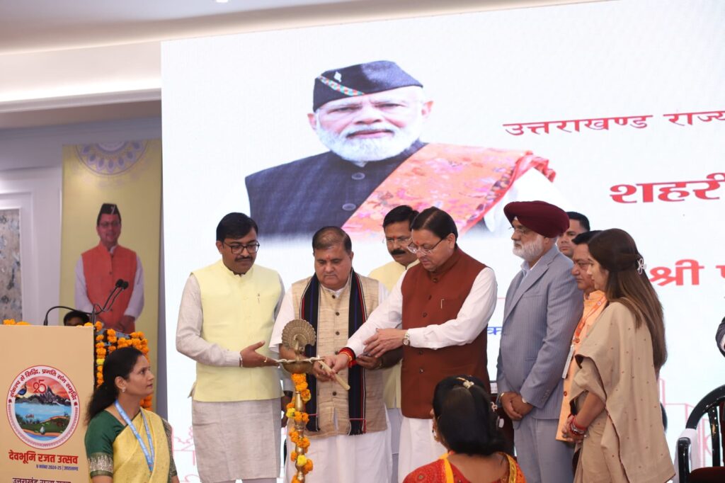 कार्यक्रम के मंच से अपने उद्बोधन में मुख्यमंत्री पुष्कर सिंह धामी ने कहा कि यह अत्यंत गर्व का विषय है कि उत्तराखंड राज्य अपनी स्थापना के 25 वर्ष पूरे करने जा रहा है। उन्होंने कहा कि राज्य निर्माण के शुरुआती दौर में संसाधनों की कमी के बावजूद लोगों की मेहनत और समर्पण ने आज इसे देश के अग्रणी राज्यों में खड़ा किया है। उन्होंने कहा कि पहले जहां राज्य में केवल 63 नगर निकाय और एक नगर निगम देहरादून था, वहीं अब यह संख्या बढ़कर 160 नगर निकाय और 11 नगर निगमों तक पहुंच चुकी है। मुख्यमंत्री ने बताया कि जब राज्य की स्थापना हुई थी, तब शहरी विकास विभाग का बजट मात्र 56 करोड़ रुपये था, जो अब बढ़कर 1300 करोड़ रुपये तक पहुंच चुका है। उन्होंने कहा कि शहरों ने न केवल राज्य की अर्थव्यवस्था को गति दी है, बल्कि रोजगार और स्वरोजगार के असीम अवसर भी प्रदान किए हैं।