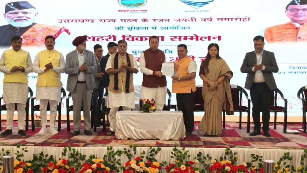 मुख्यमंत्री धामी ने आगे कहा कि प्रधानमंत्री नरेंद्र मोदी के नेतृत्व में भारत आज “सबका साथ, सबका विकास, सबका विश्वास और सबका प्रयास” के मंत्र पर चलकर विश्व पटल पर नई ऊँचाइयाँ छू रहा है। उन्होंने कहा कि स्वच्छ भारत मिशन, अमृत योजना, प्रधानमंत्री आवास योजना और स्मार्ट सिटी मिशन जैसी योजनाओं ने शहरों में नई कार्य संस्कृति और पारदर्शिता को जन्म दिया है। मुख्यमंत्री ने बताया कि उत्तराखंड में 82.5 करोड़ रुपये की लागत से 52 नगर निकायों में 115 अर्बन हेल्थ एंड वेलनेस सेंटर स्थापित किए जा रहे हैं, जिनमें से 40 केंद्रों का संचालन शुरू हो चुका है और अगले एक माह में सभी केंद्रों पर सेवाएं उपलब्ध हो जाएंगी। इसके अतिरिक्त प्रत्येक निकाय में रजत जयंती पार्कों का निर्माण कराया जा रहा है, जिनमें से 57 पार्कों की स्वीकृति दी जा चुकी है।