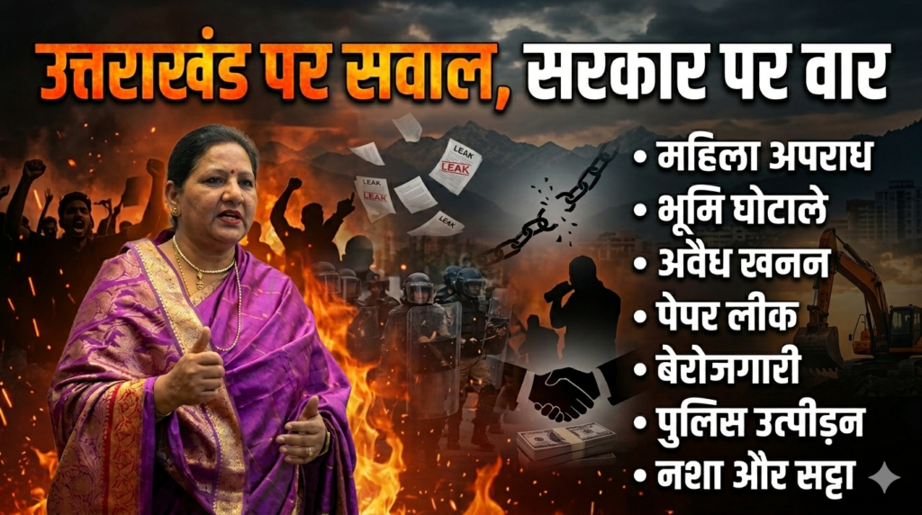 भ्रष्टाचार के गंभीर आरोपों को विस्तार देते हुए अलका पाल ने प्रदेश में व्याप्त भूमि घोटाले और अवैध खनन के खेल को मुख्यमंत्री के संरक्षण में फलने-फूलने वाला व्यापार बताया। उन्होंने कहा कि आज उत्तराखंड की कीमती जमीनें भू-माफियाओं के हवाले की जा रही हैं और पहाड़ों की छाती चीरकर अवैध खनन का काला कारोबार दिन-रात धड़ल्ले से चल रहा है। महानगर अध्यक्ष ने आरोप लगाया कि नदियों का स्वरूप बिगाड़ा जा रहा है और पर्यावरण संतुलन से खिलवाड़ किया जा रहा है, लेकिन सरकार केवल ‘कमीशन खोरी’ में व्यस्त है। उन्होंने बेबाकी से कहा कि अगर जमीन और खानों को लूटने की कला को ‘धुरंधर’ होना कहते हैं, तो निश्चित रूप से यह सरकार इस मामले में विश्व रिकॉर्ड बना रही है। अलका पाल ने सवाल किया कि क्या राजनाथ सिंह जी को नैनीताल आते समय रास्ते में खुदी हुई नदियाँ और बिकते हुए पहाड़ नजर नहीं आए, या फिर उन्होंने अपनी आंखों पर सत्ता का चश्मा चढ़ा लिया है?