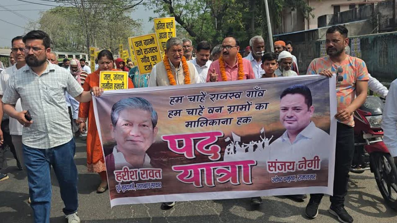 रामनगर। वन ग्रामों को राजस्व गांव का दर्जा देने की मांग एक बार फिर तेज हो गई, जब बड़ी संख्या में ग्रामीणों और जनप्रतिनिधियों ने पदयात्रा निकालकर अपनी आवाज बुलंद की। इस पदयात्रा में प्रदेश के पूर्व मुख्यमंत्री हरीश रावत, रामनगर ब्लॉक प्रमुख मंजू नेगी, ज्येष्ठ ब्लॉक प्रमुख संजय नेगी, पूर्व दर्जा राज्य मंत्री पुष्कर दुर्गापाल सहित कई गांवों से आए दर्जनों ग्रामीण शामिल हुए। ग्रामीणों ने अपने हाथों में बैनर और तख्तियां लेकर सरकार के खिलाफ नारेबाजी की और वन ग्रामों को राजस्व गांव बनाए जाने की मांग को जोरदार तरीके से उठाया। प्रदर्शनकारियों ने “धामी सरकार होश में आओ” और “वन ग्रामों को मालिकाना हक दो” जैसे नारे लगाते हुए सरकार से जल्द निर्णय लेने की मांग की। पदयात्रा के दौरान ग्रामीणों में जबरदस्त उत्साह देखने को मिला और बड़ी संख्या में महिलाएं, युवा और बुजुर्ग इस आंदोलन में शामिल हुए। प्रदर्शनकारियों का कहना था कि लंबे समय से वन ग्रामों के निवासी अपने अधिकारों के लिए संघर्ष कर रहे हैं, लेकिन अब तक उनकी मांगों पर गंभीरता से ध्यान नहीं दिया गया। यही कारण है कि अब उन्हें सड़कों पर उतरकर अपने अधिकारों की लड़ाई लड़नी पड़ रही है।