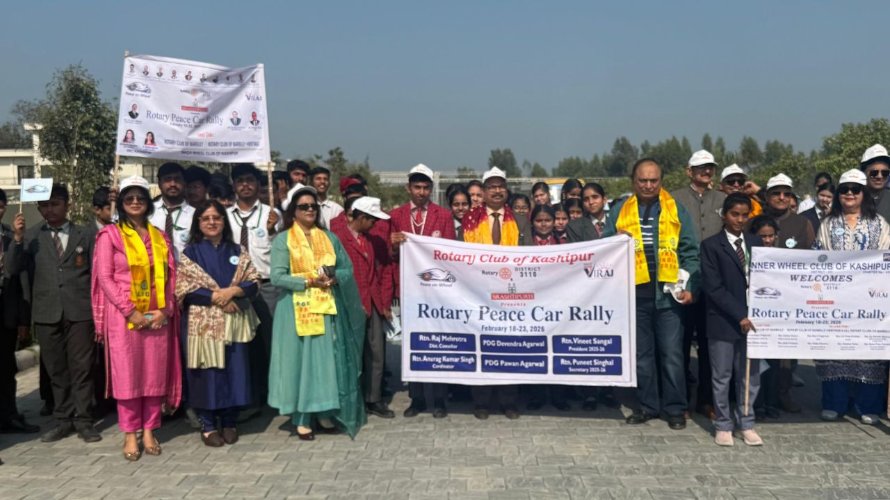 काशीपुर। रोटरी सेवा परंपरा और सामाजिक सरोकारों को जन–जन तक पहुंचाने के उद्देश्य से रोटरी इंटरनेशनल डिस्ट्रिक्ट 3110 के गवर्नर रोटरी इंटरनेशनल डिस्ट्रिक्ट 3110 के गवर्नर रोटेरियन राजन विद्यार्थी के मार्गदर्शन में आयोजित भव्य कार रैली ने उत्तर भारत के अनेक शहरों से गुजरते हुए समाज में शांति, सद्भाव और सेवा भाव का सशक्त संदेश दिया। यह रैली बरेली से प्रारंभ होकर पीलीभीत, रुद्रपुर, काशीपुर, हल्द्वानी, नैनीताल, अलीगढ़, मथुरा, आगरा और हाथरस जैसे प्रमुख नगरों से होती हुई झांसी तक पहुंचने के संकल्प के साथ आगे बढ़ी। रैली का स्वरूप केवल वाहनों की कतार भर नहीं था, बल्कि यह सामाजिक चेतना, आपसी भाईचारे और रोटरी द्वारा किए जा रहे सेवा कार्यों का चलता–फिरता प्रतीक बनकर सामने आया, जिसने रास्ते भर लोगों का ध्यान अपनी ओर आकर्षित किया।
