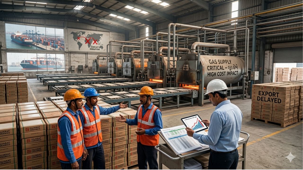 अंतरराष्ट्रीय तनाव के चलते गैस की कीमतों में उछाल से उत्पादन लागत बढ़ी, मोरबी समेत कई केंद्रों में फैक्ट्रियां प्रभावित हुईं, निर्यात, परिवहन और रोजगार पर भी मंडराने लगा संकट।